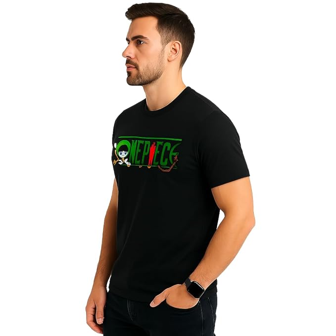 - PREMIUM DESIGN: Black t-shirt featuring a striking anime-inspired character graphic with distinctive green hair and stylish sunglasses