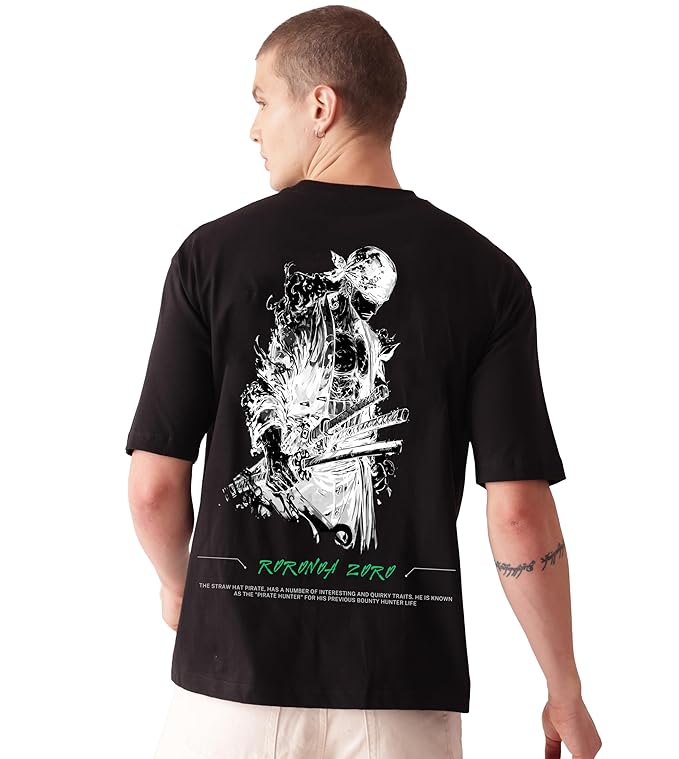 Starton Apparel Unisex Cotton T-Shirt One Piece Monkey D. Luffy Roronoa Zoro Anime Graphic Oversized T Shirt for Men and Women Drop Shoulder Loose Baggy Fit Unisex